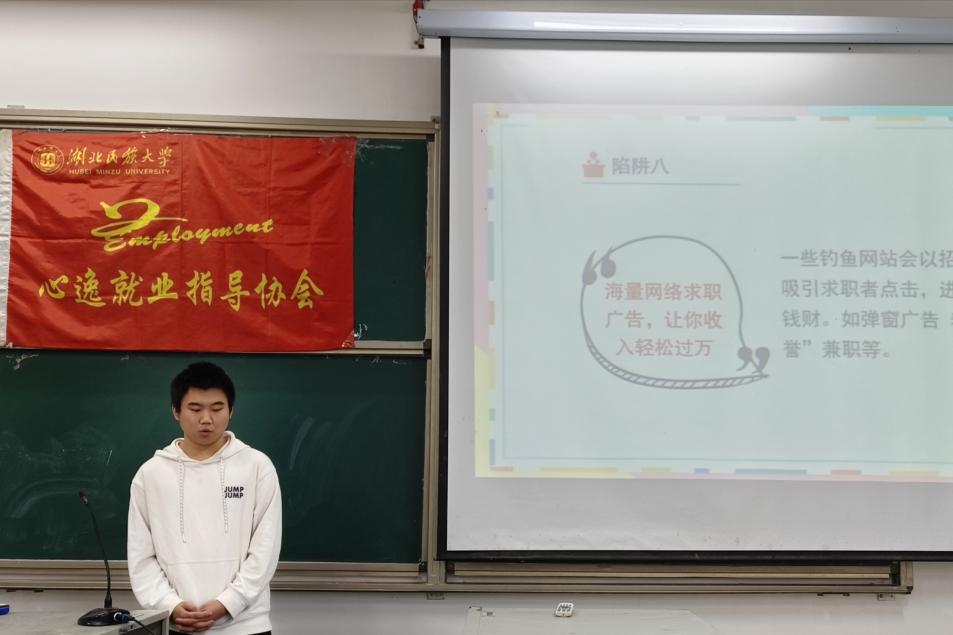 培训主讲人通过系统梳理求职过程中常见的九大陷阱,用真实案例向学生讲解甄别方法与应对技巧。活动现场还设置互动咨询环节,为学生解答简历撰写、合同签订等实际求职疑问。