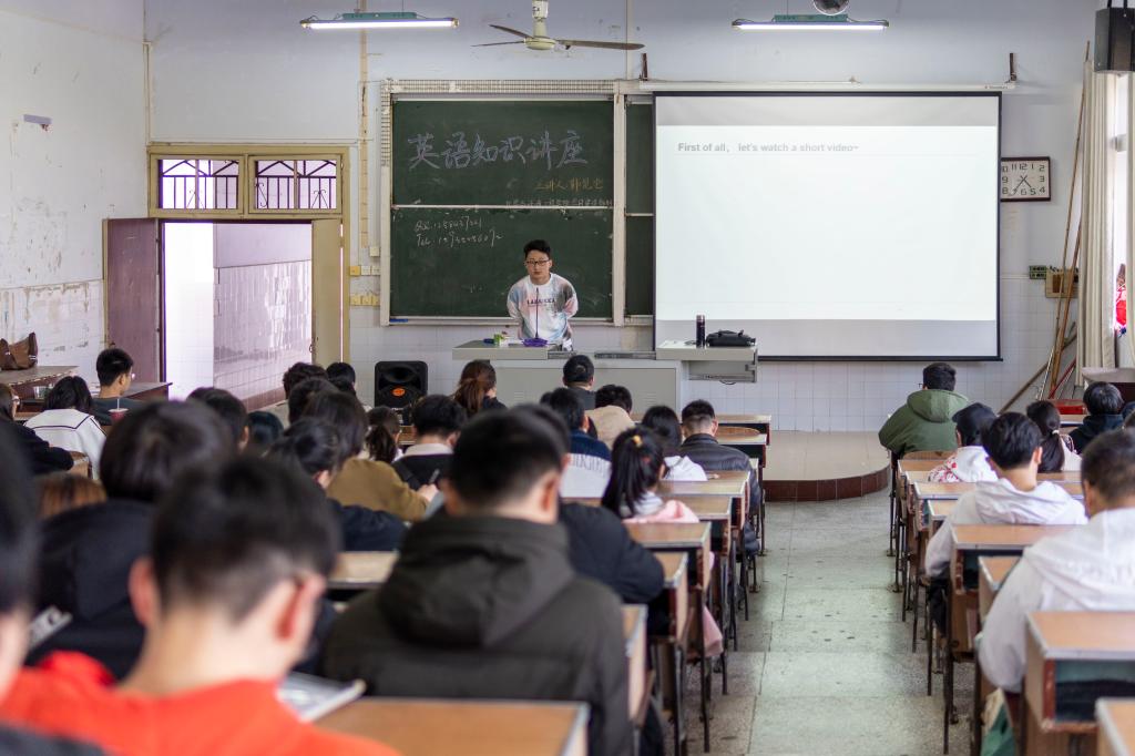 本网讯(通讯员 卢炯 汪蕴好/文 方佳烨 许智玮/图)3月5日,英语知识讲座于我院2207教室举行,由优秀毕业生代表韩昆仑主讲,我院部分学子参加此次讲座。