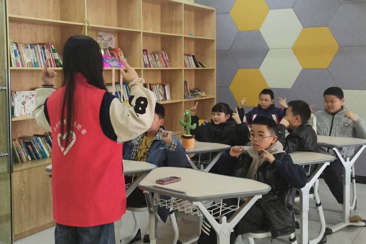 此次活动分为“猪猪侠热身操” “制作手工花朵”“手势舞《愿你》”三个部分。活动伊始,志愿者带领着小朋友们复习热身操,在音乐的律动下小朋友们集中注意力、调整自己并迅速进入状态。志愿者为激发小朋友们的好奇心和求知欲,将制作完成的手工郁金香进行展示。接着,志愿者将制作过程一一分解,循循渐进,并对较难和有问题的步骤着重讲解,力求每个小朋友不掉队且都在动手。结束手工学习之后,小朋友们通过学习手势舞《愿你》进行放松,在歌曲中感受时代对青年的美好祝愿。最后,志愿者鼓励小朋友将自己所作的郁金香送给家长并表演手势舞,展示自己的学习成果。