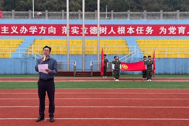 国歌声起,校国旗护卫队完成升国旗仪式。学生代表进行出团旗仪式,全体团员合唱国歌并重温入团誓词。活动进入第五项,我院孟雅静与马克思主义学院张弘、向自力三位学生代表为大家讲述红色故事、分享大学经历。接着,由彭召元老师讲授微团课,他从鸦片战争出发,讲述了中国艰难的奋斗史与发展史,并向两院学子寄予“成为习总书记所说的有理想,敢担当,能吃苦,肯奋斗的新时代好青年”的希冀。最后,桑秋章书记进行总结发言,他鼓励两院学子“爱国”“爱家”“爱校”“爱自己”,并以“以志为先,以新为径,以苦为念”作引,呼吁同学们立志民族复兴,不负时代与人民,在青春赛道上跑出风采。