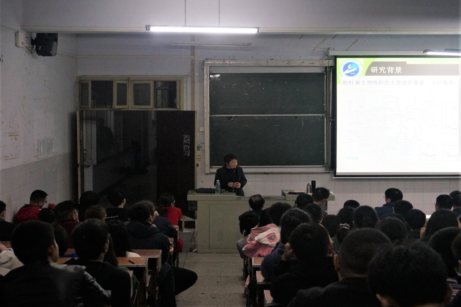 本网讯(通讯员 吴周玉 杨彩钰 廖海冬/文 付彬彬/图)10月17日,武汉工程大学化学与环境工程学院院长余军霞应邀到我院2107教室开展以“生物质吸附剂协同提取分离固废中有毒有价金属”为主题的学术报告。我院院长余爱农、副院长刘应煊,部分教师、研究生及我院20级化学专业和应用化学专业全体学生到场聆听。余爱农担任主持人。