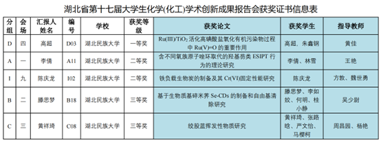 湖北省大学生化学(化工)学术创新成果报告会是展示湖北省高校创新人才培养成果的重要窗口,受到省内高校的广泛关注,产生了良好的社会影响。(责任编辑 汪蕴好)