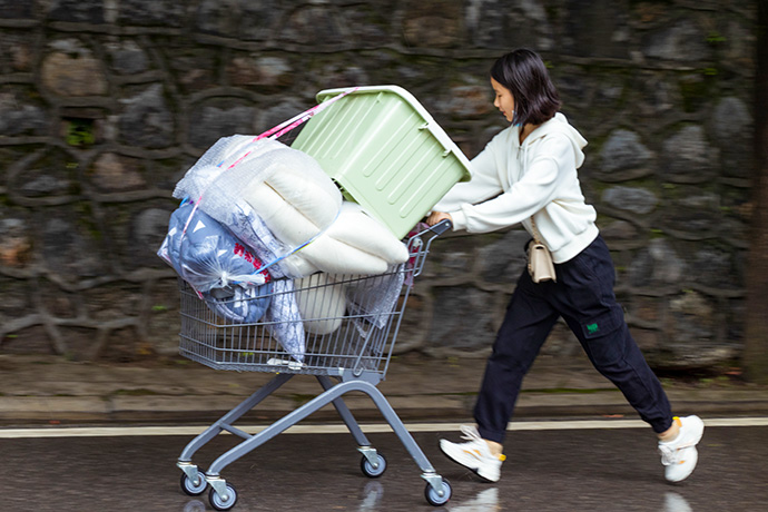 新生独自搬运行李