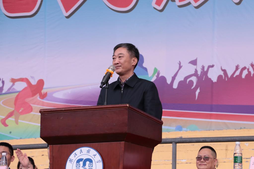 邓磊致开幕辞。他表示,运动会是永利官网贯彻“全方位育人”教育思想的重要载体,也是全校师生体验激情人生的重要良机;运动会是一场体育竞技的盛会,也是一堂挑战自我、勇攀高峰、实现梦想的成长课程;运动会是广大师生展示自我风采的舞台,也是促进相互融合交流的平台。他希望全体运动员和裁判员秉承“锻炼身体、增强体魄”的宗旨,发扬“更快、更高、更强”和“团结、友谊、进步”的奥林匹克精神,团结协作、不断超越、创造出优异的成绩,使赛事真正成为一次加深友谊、团结鼓劲、互相学习、开拓前进的体育盛会,在运动中展现民大人“顽强拼搏·勇于挑战”的风采!