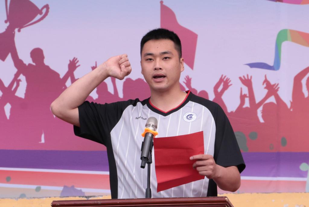 经济与管理学院运动员阿力米拉•托合提和体育学院裁判员李国欣分别代表运动员和裁判员宣誓。