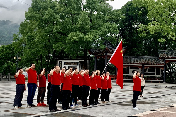 在湘鄂边苏区鹤峰革命烈士陵园,全体党员面向党旗重温入党誓词。在烈士陵园主墓区,支部党员听取讲解员对段德昌、王炳南、贺英3位烈士的介绍,并向烈士墓碑三鞠躬,表达对烈士的缅怀之情。在鹤峰县博物馆,党员一边聆听讲解员讲述动人的党史故事,一边观看革命文物和书籍资料。在燕子镇易满成工作室,支部党员与“全国劳动模范”易满成展开座谈,会上易满成讲述了自己在农村开展司法工作的经历,并告诫广大党员要务求实效,不断学习党史,坚定理想信念。