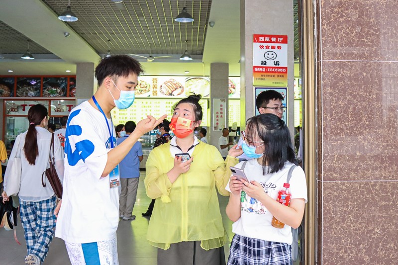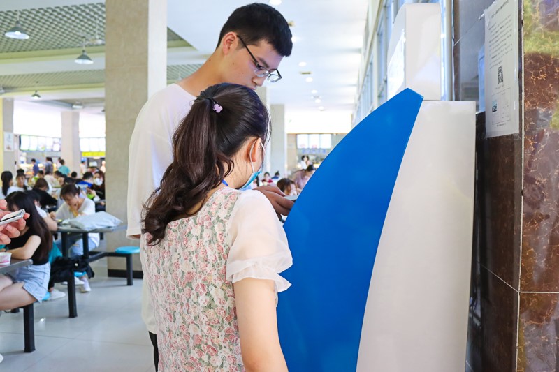 此外,饮食管理协会在各食堂前设置服务岗位,为新生解答就餐方面遇到的问题,同时在就餐高峰期安排流动的秩序维护人员;后勤集团管理服务中心在保证各食堂饮食充分供给的同时,还在各宿舍片区安置了线上商城,提高新生就餐体验感。