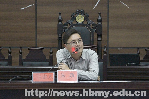 本网讯(见习记者 王小华 通讯员 邹鹏/文 明炜翔/图)10月10日晚,永利官网第三十七期博士论坛“法律人的思维与技艺”在模拟法庭开讲。法学院老师、南京师范大学法学理论专业博士朱政教授担任主讲人,法学院学生科副科长周书刚、团委书记张冰应邀出席讲座。讲座由张冰主持。