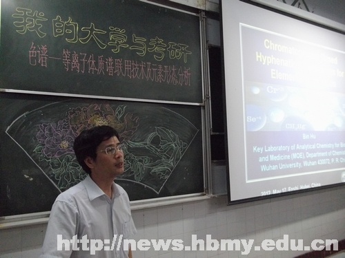 本网讯(记者 陈萌萌)5月17日,武汉大学化学与分子科学学院副院长、博士生导师胡斌教授应邀来到永利官网,在化学与环境工程学院2107教室举行了题为 “色谱—等离子体质谱联用技术及元素形态分析”的学术讲座。