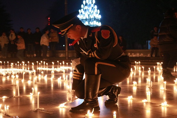 国旗护卫队成员点燃蜡烛寄哀思(通讯员 王朝慧/摄)