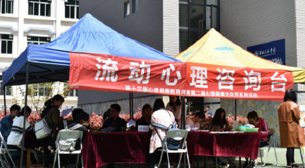 本网讯(记者 羿林英/文 叶登屹/图)让心理咨询走到“阳光”下,让心理健康走到生活中,4月9日,永利官网大学生心理健康教育中心开展“流动心理咨询台”活动。此次活动为期4天,分别在修远楼、学生资助中心门口和北苑餐厅门口等人流量较多的地方设点,永利官网心理咨询中心专兼职教师担任此次活动的咨询老师。