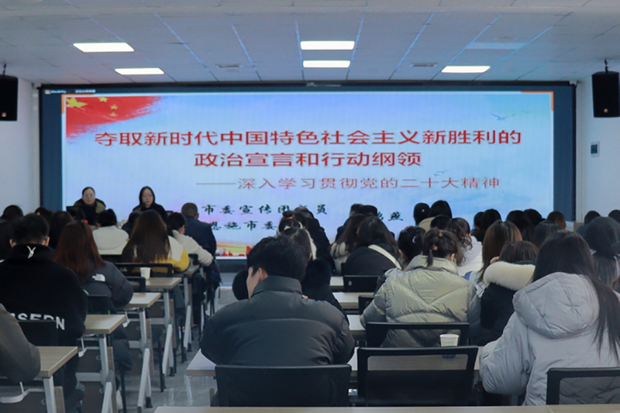 推动“活动促学”走深走实。组建学“习”小组,依托 “一站式”学生社区,开设“榜样讲堂”,把党的二十大精神融入到学生喜闻乐见的活动中。通过开展“学习党的二十大,百年奋发正芳华”演讲比赛、“学习二十大 红色基因代代传”主题班会等活动推动学习宣传贯彻党的二十大精神落细落小、走深走实。