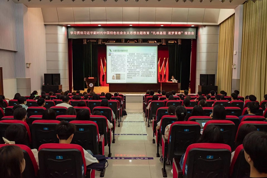 报告会上,陈娟分享了承载她年少梦想的民大回忆,讲述了扎根基层的工作经历。她表示,基层装扮了她的平凡青春,完成了从学校到社会、从城市到乡镇、从掌上明珠到乡干部的角色转变,与群众一次次真心相待和热情回应,让她真正开始懂得了如何守护基层。9年的基层工作中,陈娟为群众提供法律援助,帮助解决农民工工资发放、老人养老、重点人员就业就学等民生实事400余件,累计管理社区矫正和安置帮教对象1200余人。她尽其所能地与群众交流、交心、交朋友,了解群众需求,维护他们的合法权益,成为了群众最信赖的人。陈娟勉励同学们生逢盛世要自信自强、不负盛世,在中华民族伟大复兴的赛道上奉献自己的青春力量,向母校交出合格的成长答卷。