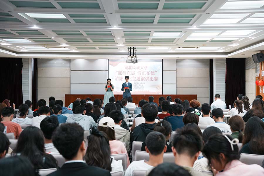 6月5日,学校在德智楼三楼多功能会议厅举办以“廉洁在志,清正在德”为主题的清廉文化演讲比赛,本次比赛是学校纪委、马克思主义学院、校团委联合举办“青春民大·清风校园”清廉文化系列活动之一。学校纪委委员、案件审理室主任、四级高级监察官郑敏,党委组织部副部长徐小平,学生工作处副处长徐杰,校团委副书记向驰,医学部党委副书记许宗友,廉政文化研究中心研究人员袁琳、鲁帅受邀出席本次比赛并担任评委。
