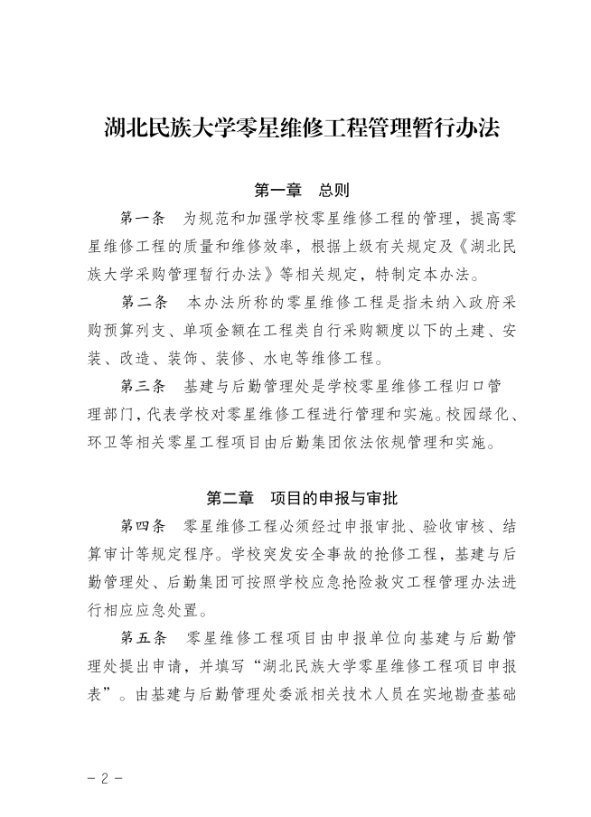 《湖北民族学院基建修缮工程项目审计实施办法》