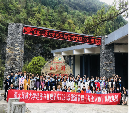 本网讯(记者 杨城 谭彰 张星雨)2020年10月10日至11日,我院2020级旅游管理专业学生赴利川腾龙洞景区、玉龙洞景区以及恩施大峡谷景区开展新生入学教育暨《专业认知》课程实践活动。我院党委副书记张姣蓉、旅游管理系主任高华峰、学生科科长曹骞、部分专业老师及旅游管理专业195名学生参加此次活动。