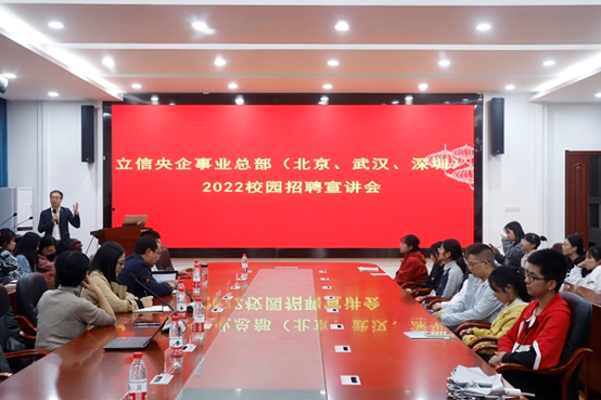 本网讯(记者 王冰雨 祝悦/文 熊海婷/图)2021年10月15日,立信央企事业总部2022校园招聘宣讲会在经管楼附303会议室开展。经济与管理学院党委副书记张姣蓉,立信央企事业总部湖北分所人力资源部经理王倩、审计部部门副经理陈智学、资深人力资源专员曾贞、人力资源部专员余湛帆,经济与管理学院学科建设科科长冉瑞恩、MPAcc中心常务副主任向浩、学生科科长曹骞、学生科老师向绍阳,出席宣讲会。