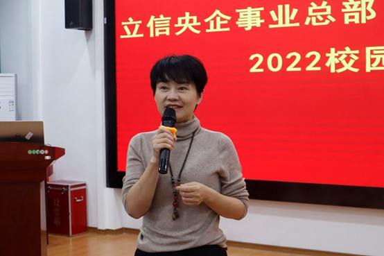余湛帆作专题宣讲。她以会计行业数据为出发点,围绕立信的成立、发展节点、人数增长规模、分支机构覆盖率、服务领域和业务领域、客户群体、人才培养机制展开宣讲。随后,她从竞争优势、项目经验、人员规模、核心团队四个方面对立信央企事业总部进行介绍,并对员工集中式岗前培训模式、培训课程体系、培训管理系统和分享平台展开详细讲解。