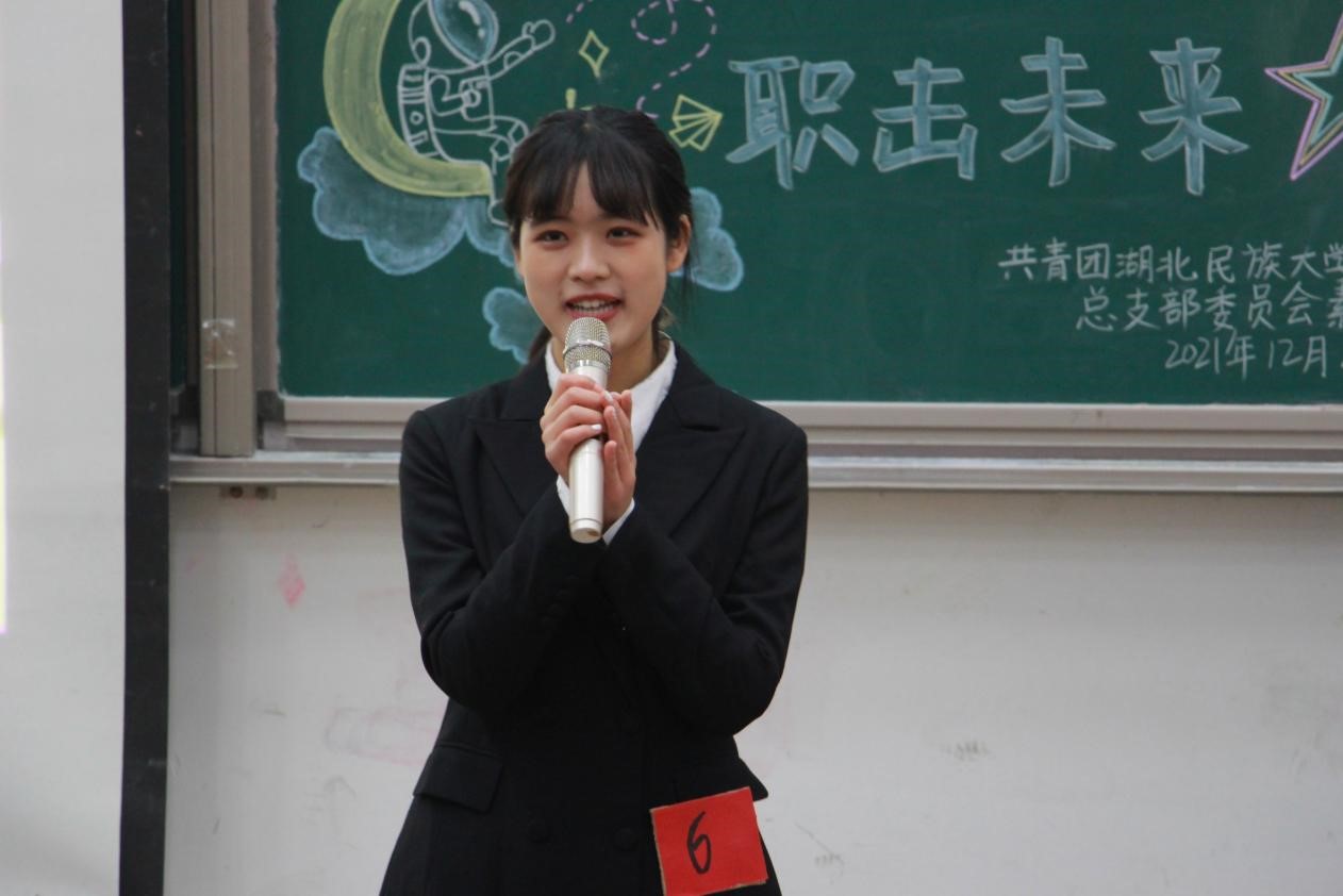 在自我展示环节中,一号选手胡小亿应聘高中政治老师一职,并围绕学习以及竞赛荣誉、学生工作以及志愿服务、思想引领以及社会实践、应聘优势以及未来规划四方面讲述自身竞争优势。他表示,思想政治教育应注重对学生世界观、人生观、价值观的培养,老师可通过志愿服务经历引导学生树立正确的价值观念;四号选手王汝瑛从基本信息、个人经历、职业认知与规划三个方面进行介绍,并表明其求职岗位是数据分析师。在面对评委提出“数据分析师最需要具备什么能力”的问题时,她提到,掌握大量基础知识、精准抓取数据和合理运用数据分析软件是成为一名数据分析师的基本能力。