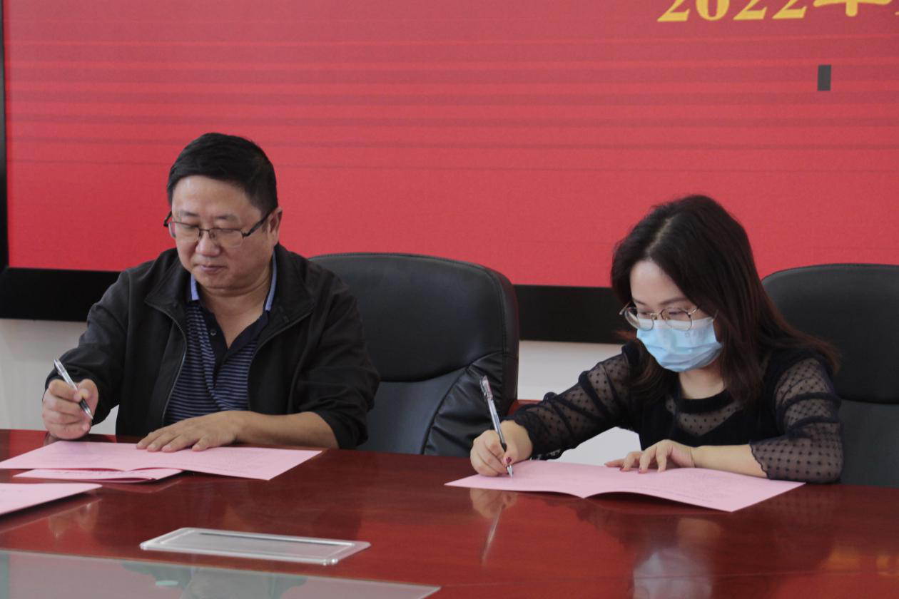 学院院长张新平分别与会计学系、经济学系和旅游管理系签订《2022-2023学年目标任务书》并合影留恋。