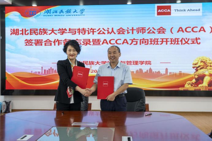 学校党委常委、副校长李军与ACCA中国教育关系和华中区总监朱晓云进行了亲切的会谈。经济与管学院党委书记陈霞、副院长冉瑞恩、会计系主任刘洁玫,ACCA中国内地关系教育关系主管周惠玲、ACCA湖北教育拓展经理郭姝、ACCA湖北教育拓展主任胡姚瑶,高顿教育高校事业部业务经理谢晖、高顿教育中原战区学管主管柳青、高顿教育中原战区学管张颖洁、高顿教育高校事业部华中区运营胡汝丽,2024级湖北民族大学首届ACCA方向班的全体同学共同参与了本次活动。陈霞主持本次签约仪式。