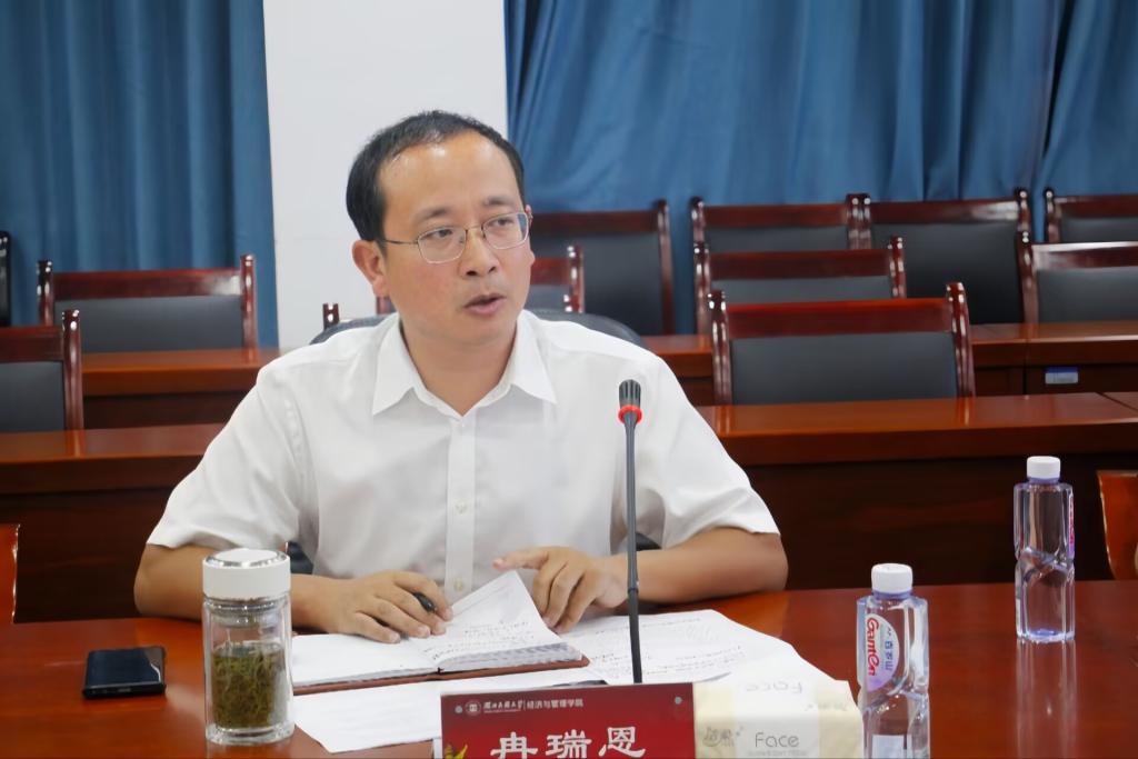 冉瑞恩致辞。他首先对刘委凤教授的到来表示热烈欢迎,并向在座的同学详细介绍了刘教授的个人简历。他表示,此次讲座能够邀请刘凤委教授实属荣幸,希望同学们能够珍惜机会,有所启发。