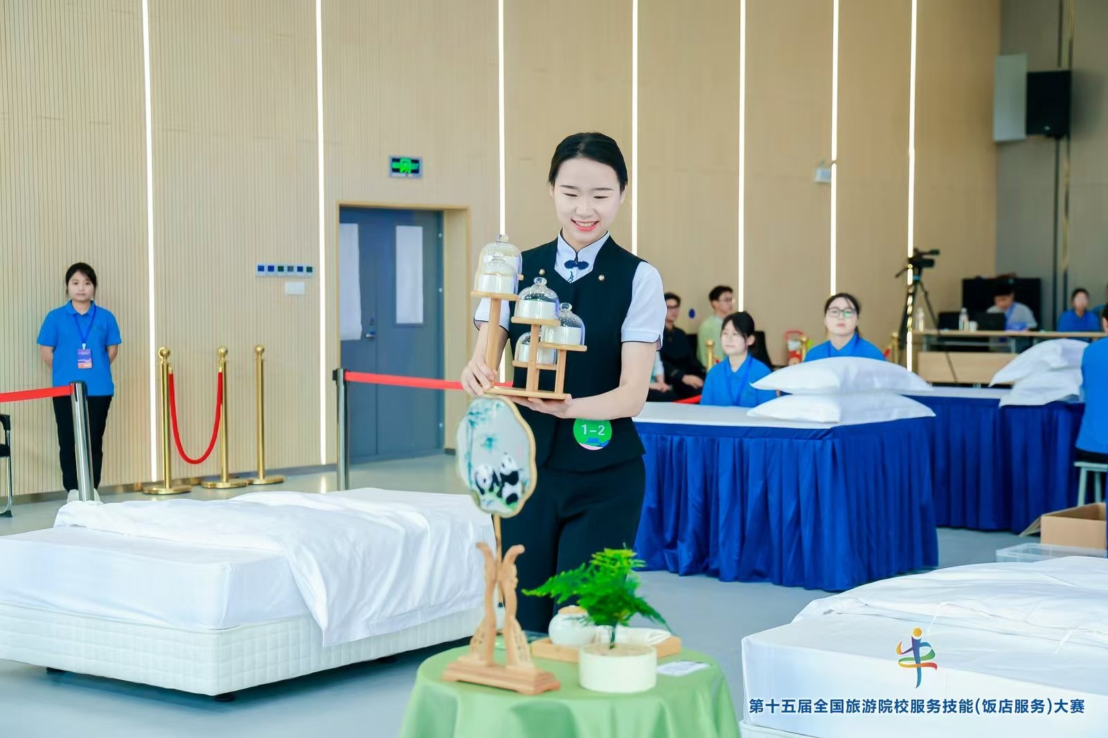 本次大赛吸引了全国近70所高校594名选手同台竞技,赛事设置理论知识考核、英语口语测试、实操技能三大板块,全面考察选手的专业素养与综合能力。在紧张激烈的角逐中,田艳同学凭借规范从容的西餐摆台设计摘得一等奖;姜志容、熊坪会两位同学分别在中式铺床与鸡尾酒调制项目中获二等奖;李慧莲在中餐摆台中收获三等奖,充分彰显了永利官网旅游管理专业人才培养的卓越成效。