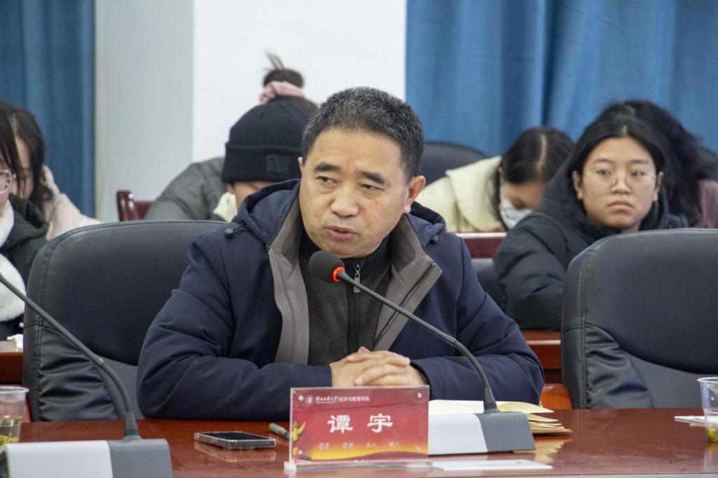 本网讯(见习记者 李如意/文 布威/图)为增强专业自信,加深师生之间交流,2023年12月21日,经济与管理学院在经管楼附303会议室举办以“以学生为中心推进国际经济与贸易专业高质量发展”为主题的国际经济与贸易专业师生交流座谈会,经济与管理学院院长张新平、副院长冉瑞恩、教授谭宇、教师乔勇、李秋萍、阳碧玉、学生科辅导员覃雨及2023级国际经济与贸易专业全体学生参加本次座谈。