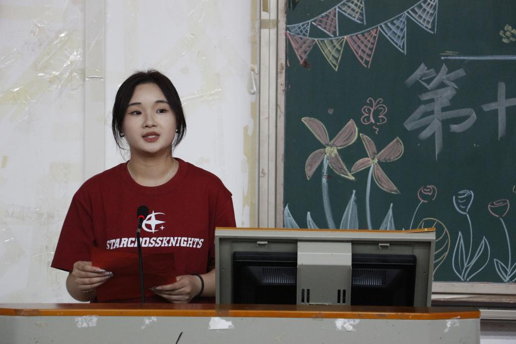 上一届社团代表余鑫鑫发言。她表示,心连心社团成员彼此信任、相互协作、其乐融融,共同度过了许多难忘的时光。她鼓励新一届的社团成员们继续保持这种团结友爱的精神,不忘初心、砥砺前行,共同为公益事业做出更大的贡献。