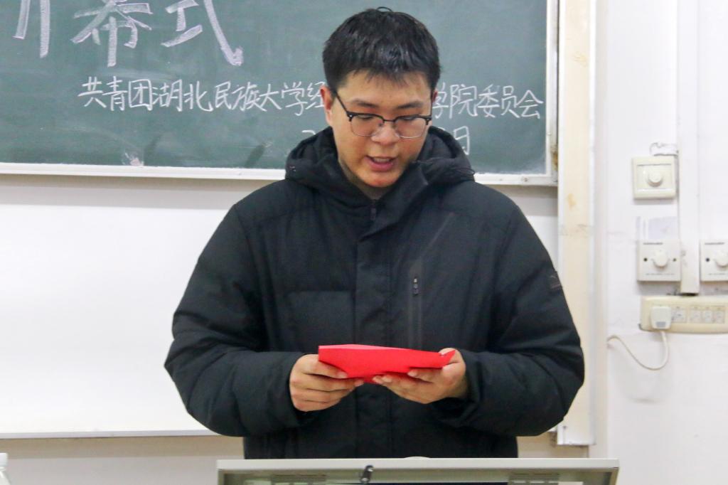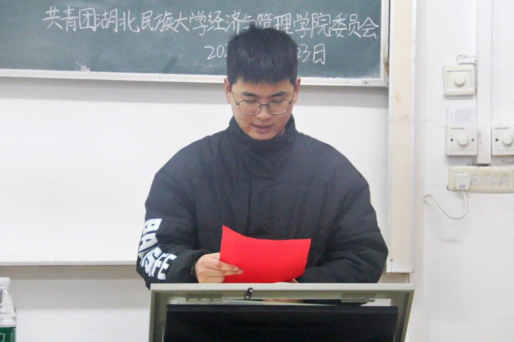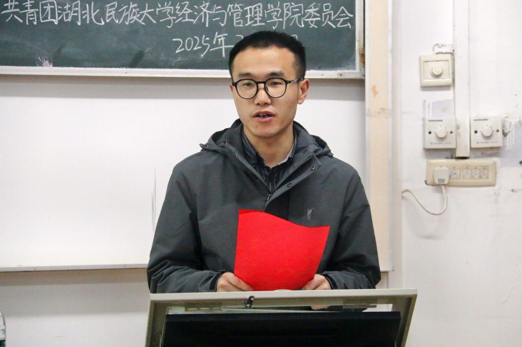 本网讯(见习记者 苏燕康 郭佳/文 记者 郑诗彤/图)2025年3月23日,经济与管理学院联合“一站式”学生社区以“追光而遇 沐光而行”为主题的团体艺术赛暨第十届团支部风采大赛开幕式在文瀚楼1302教室举行。经济与管理学院团委书记杨睿,学生科辅导员唐桢坤应邀出席本次活动。杨睿担任本次活动主持人。