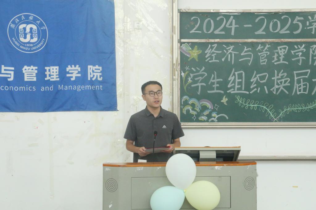 本网讯(记者 吴德一 杜秋畅/文 穆耶赛尔 阿依加马力/图)2025年5月25日,经济与管理学院联合“一站式”学生社区-春雨社区在修远楼5B403多功能报告厅举行第十五届学生干部换届大会。经济与管理学院学生科科长覃杰,学生科辅导员覃雨、唐桢坤应邀出席本次大会。经济与管理学院团委书记杨睿担任主持人。