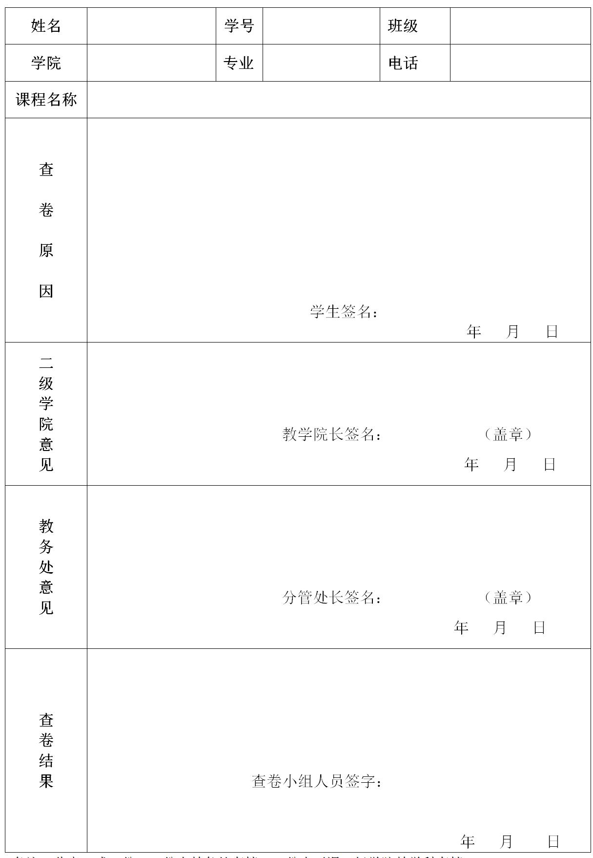 备注:此表一式二份,一份由教务处存档、一份由开课二级学院教学科存档。