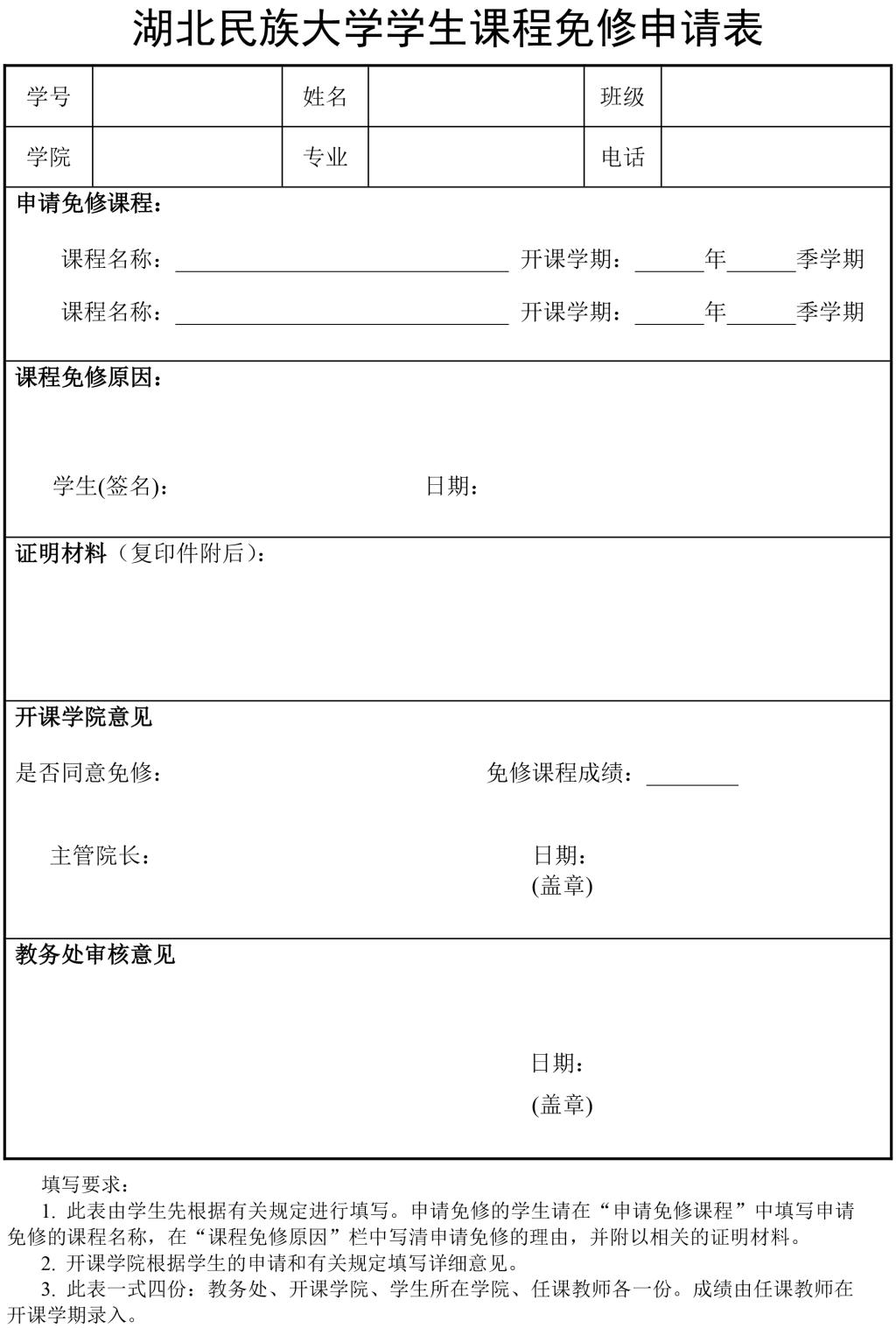 3044am永利集团3044noc学生课程免修申请表.docx