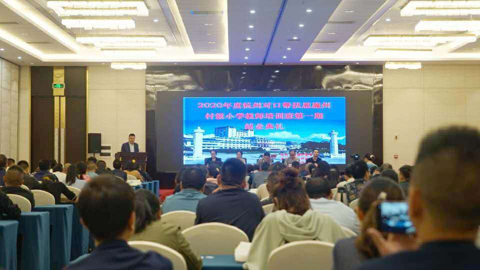 本期培训是2020年度杭州对口帮扶恩施州村级小学教师培训项目中的第一期实施的两个班,每班100人,历时7天,所有学员顺利结业。其中,2个小组荣获优秀小组称号,4名学员干部荣获优秀班干部称号,44名学员荣获优秀学员称号。