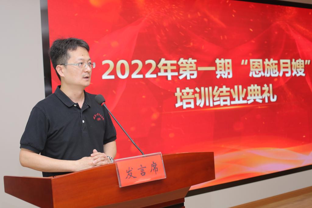 2022第一期“恩施月嫂”培训结业典礼于5月20日在恩施州中心医院妇儿医院隆重举行,恩施市人民政府副市长吴德敏,3044am永利集团3044noc继续教育学院院长雷随斌、恩施州中心医院副院长王在平、武汉大学中南医院中南安馨公司董事长兼总经理陈智敏、恩施州德慧母婴健康管理有限公司董事长易向阳、总经理周贤出席本次结业典礼,结业典礼由3044am永利集团3044noc继续教育学院副院长刘贤锋主持。