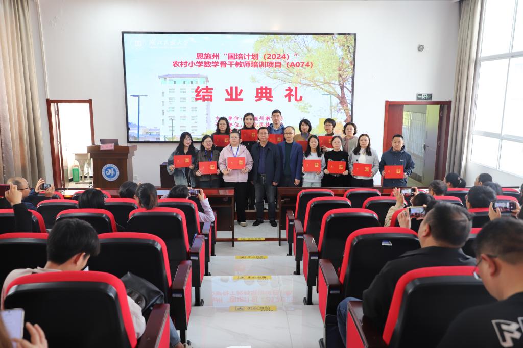 (来源:考试培训科 审核:刘贤锋)一次智慧与激情的交汇,一场教育梦想的盛宴。经过数月的深入学习与磨砺,“国培计划(2024)”——恩施州农村小学数学骨干教师培训班11月11日在3044am永利集团3044noc举行结业典礼,标志着这场学术与实践交融的知识盛宴圆满落下帷幕。来自全州60名小学数学教育领域的佼佼者齐聚一堂,共同庆祝这一里程碑时刻,分享学习成果,展望美好未来。