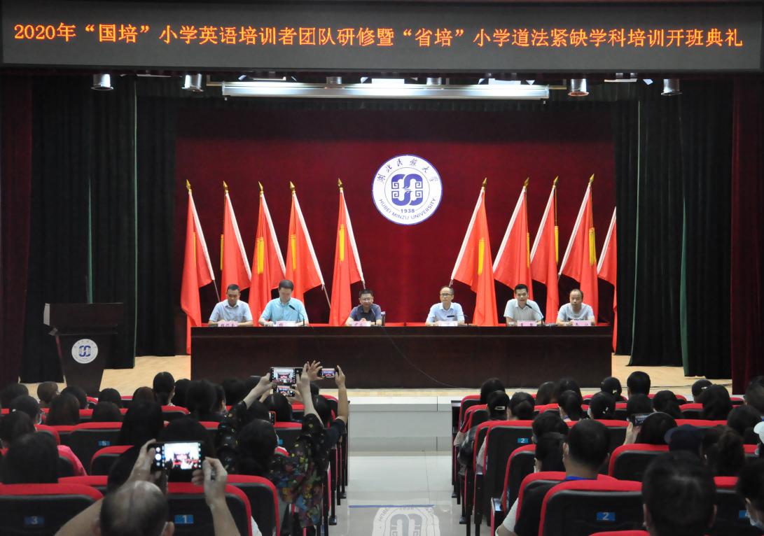 8月20日上午,湖北省2020年“国培”小学英语培训者团队研修项目暨“省培”小学道德与法治紧缺学科培训项目开班典礼在学校行政楼1号会议室举行,这是永利官网承接实施的湖北省2020年“国培”“省培”第二期培训项目。典礼由考试培训科科长杨斌主持,继续教育学院副院长刘贤锋、恩施市第一高级中学正高级教师尹应睿出席典礼。