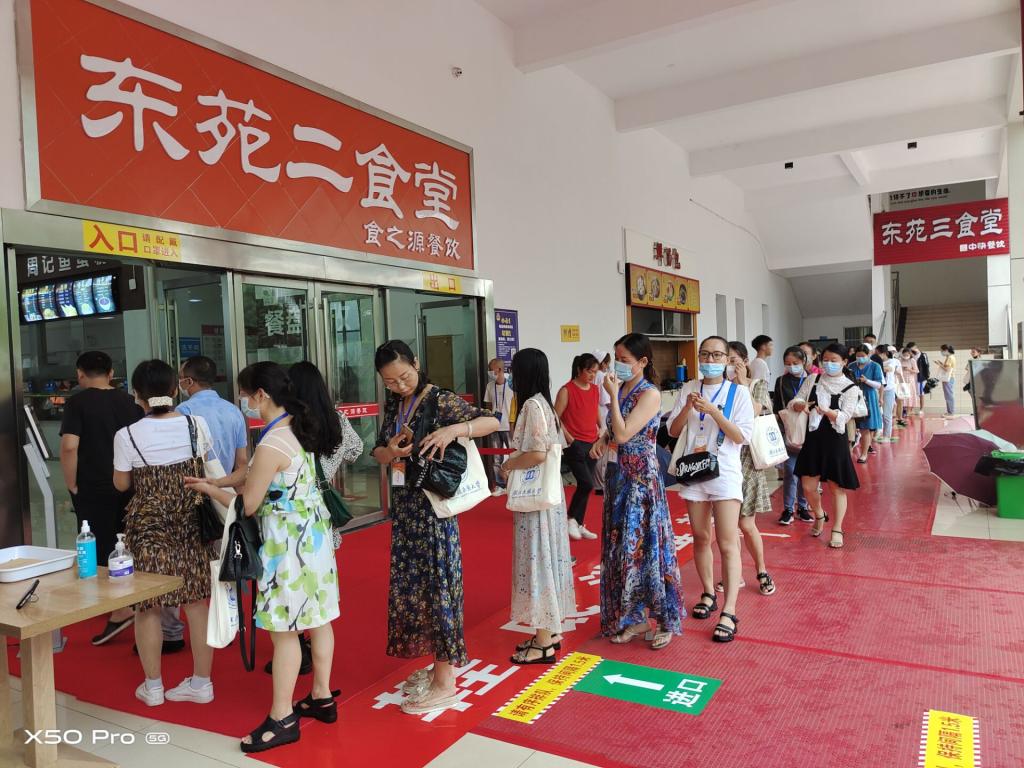 按照防疫要求学员测温就餐