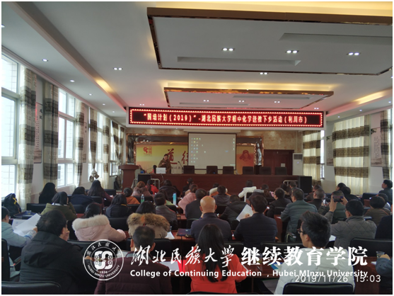 本次送教下乡活动从11月12日开始,分别在咸丰县、宣恩县、利川市开展,每个县市为期4天,分两阶段进行,每阶段3个学科、历时2天、200余人参加。活动具体由永利官网继续教育学院组织实施。整个活动严格按照省教育厅和县市教育局、研培中心的相关要求和送教需求进行,认真拟定了送教培训方案,邀请了省内知名专家教授和教学一线的优秀教师30余名,采取专题报告、听课评课、研磨打造、示范解析、微讲座、现场答疑等形式,为大家送课、同大家交流。活动于11月29日结束。