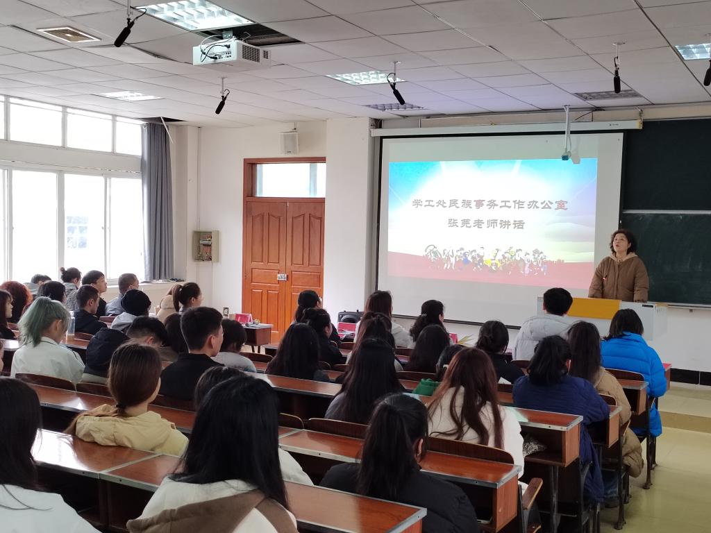 大会共有六项议程。首先由民族事务工作办公室主任谭俊妮老师讲话,她提出学生要守护自身各方面的安全,要立鸿鹄志,做奋斗者,身体力行,做践行者,让青春在奋斗中出彩。接下来由民族事务办公室张芫老师讲话,她对学生的日常纪律与秩序提出了要求,希望学生享受在民大的学习生活。大会第三项由学院党总支书记刘际华老师讲话,她希望学生牢记学生本分,努力学习,明确自己的目标,同时也要保持身心健康,增强自信心,磨练意志。接着由学工办成润老师介绍民大疆级学生的基本情况,强调《学生手册》中的相关纪律要求。学生代表方嘉怡、艾力亚斯·艾斯开尔依次发言,他们表达了对老师和同学的感谢之情以及开学以来的学习感受。现场同学畅所欲言,提出了很多建议和意见,参会老师一一作答。