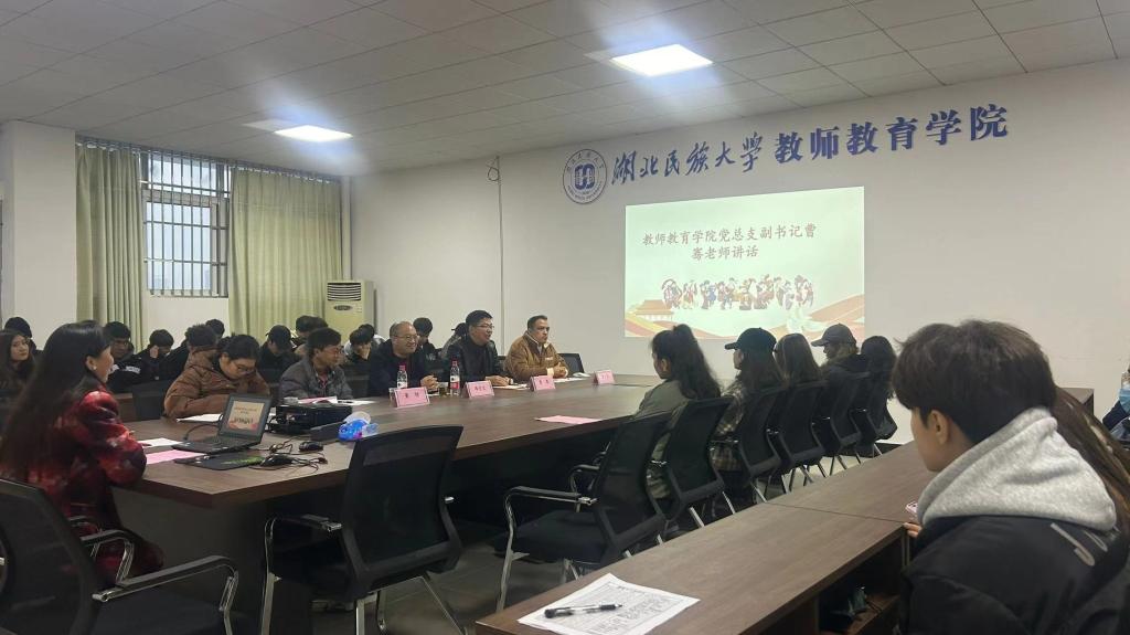 本网讯(通讯员 古海尔尼沙·艾合买提)12月14日下午,教师教育学院在9A505会议室召开“共话中华情,共筑中国梦”铸牢中华民族共同体意识学生座谈会。学校学生工作处民族事务办公室谭学文主任和董特老师、学院党总支副书记曹骞、学生工作办公室主任成润、辅导员和50余名学生代表参加了座谈会。座谈会由辅导员古海尔尼沙·艾合买提老师主持。