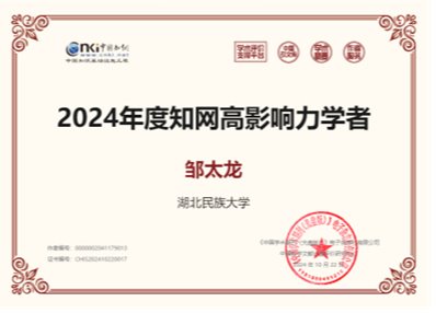 近日,中国知网公布了2024年度知网高被引学者名单,我院教师罗华陶教授、邹太龙副教授获评“2024年度知网高被引学者”。