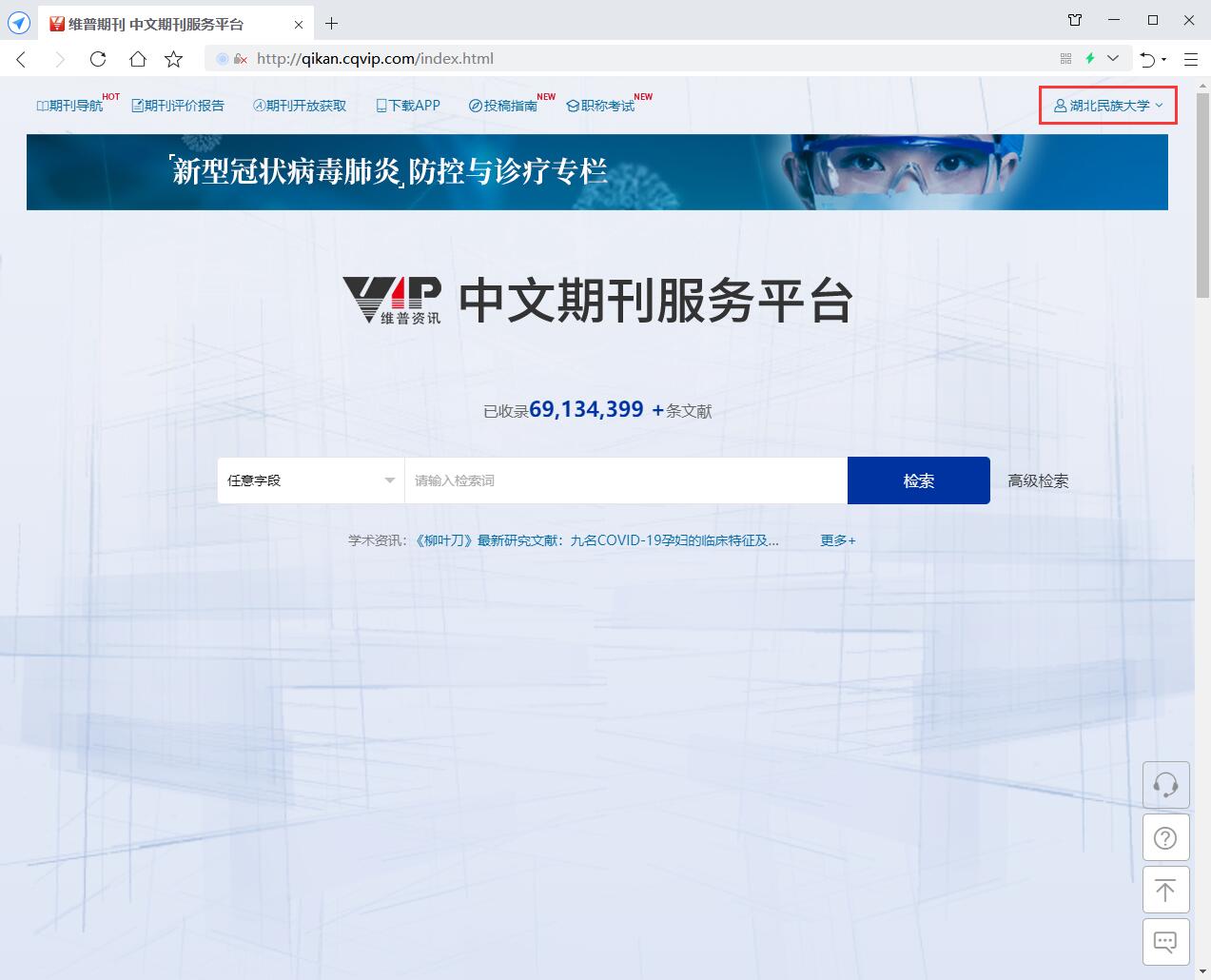 5、完成登陆,跳转至中文期刊服务平台资源页面。