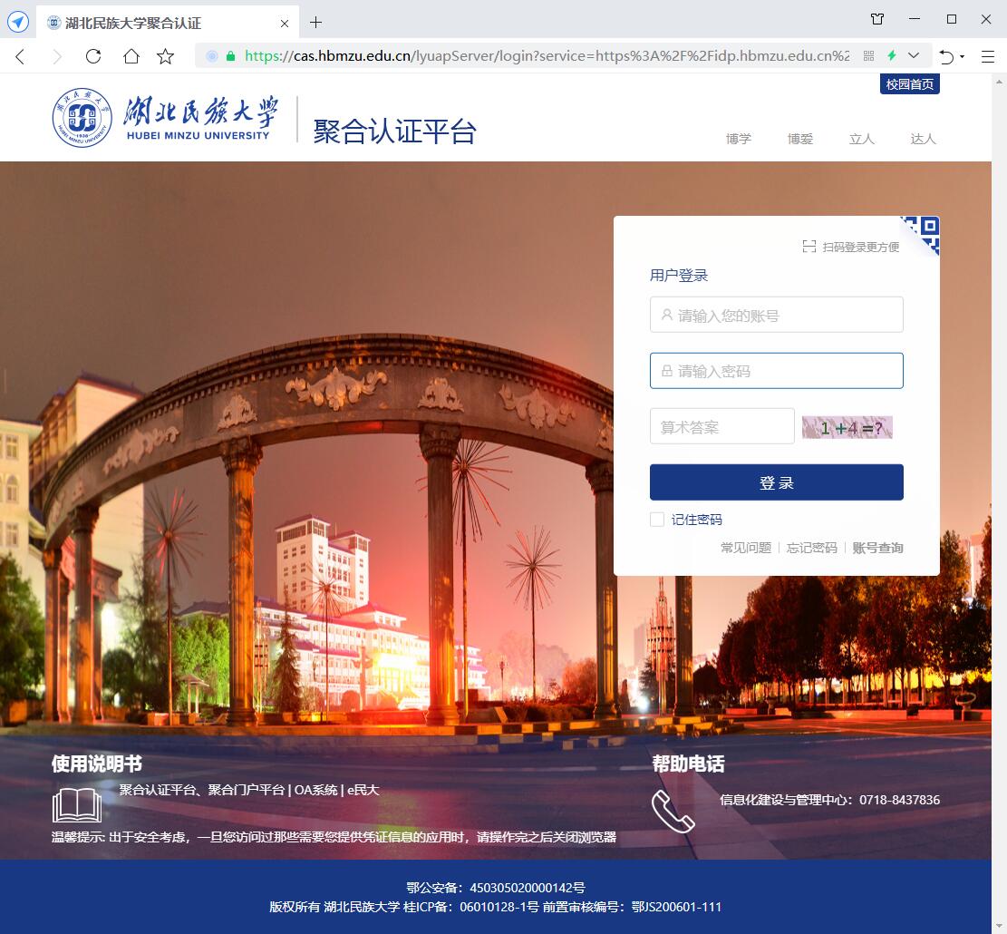 3、进入3044am永利集团3044noc聚合认证平台登陆页面,输入统一身份认证帐号、密码及验证码。