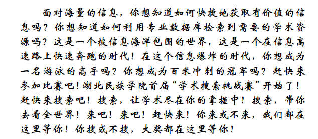湖北民族学院首届“学术搜索挑战赛”