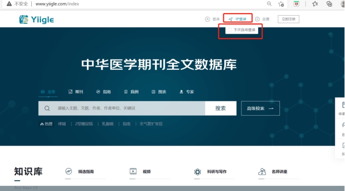 使用方式:登录www.yiigle.com访问。院内IP范围内直接点击IP登录,院外个人注册账号进行登录,勾选下次自动登录后后续登陆网页直接浏览下载全文。
