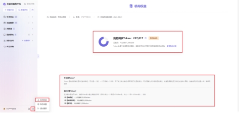 可通过左下角的机构权益查看剩余token