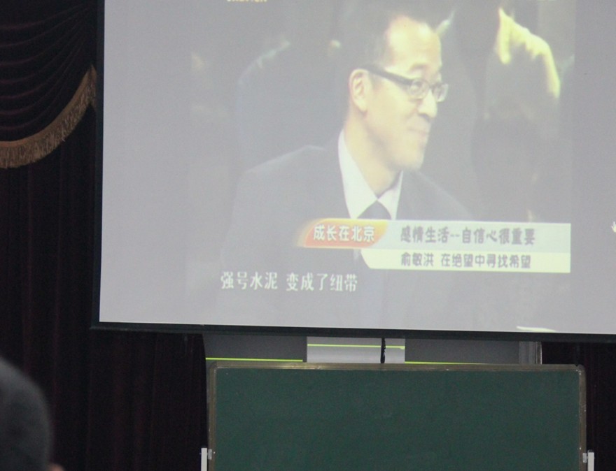 在讲座前,孔老师播放了新东方教育科技集团董事长兼总裁、被誉为当下中国青年大学生和创业者的“心灵导师”、“精神领袖”俞敏洪的“成长在北京”的访谈。该视频也是新东方多媒体学习库的内容之一。