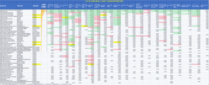 表二 2023年3月湖北省进入ESI前1%的机构和学科潜力情况
