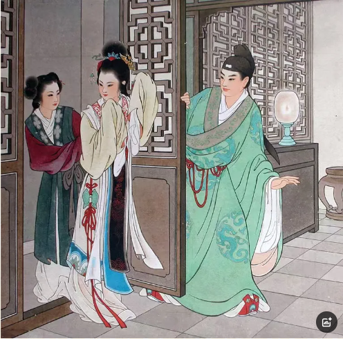 果真如此,张生成功击退贼人,婚约也已定下,红娘送帖,张生自顾。书生犹豫未备聘礼,衣着合适否;小姐对镜梳妆,内心期待。